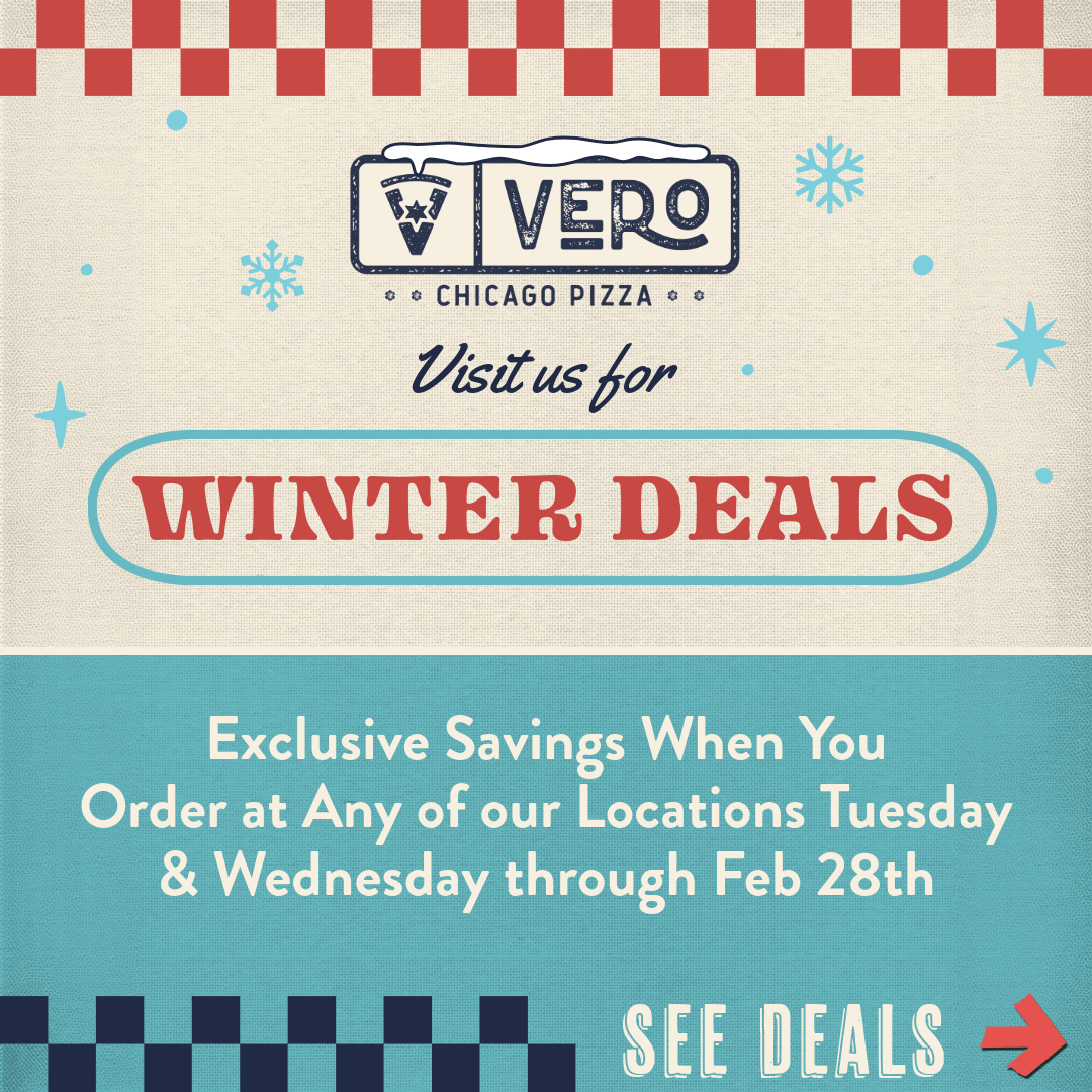 See All Winter SavingsYelp recently ranked the Best Chicago Style Pizza and Vero was ranked third in the nation! Read the article here -->